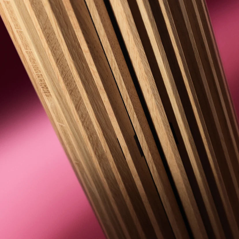 Adaptiver KlangMachen Sie den Moment zu dem Ihrigen mit dem direktionalen Klang des Beolab 28. Für persönliche Sessions mit Ihren Lieblingskünstlern können Sie die Holzabdeckungen verengen, um den ultimativen akustischen Sweetspot zu schaffen. Bei Filmabenden oder Dinnerpartys können Sie die Lautsprecher weit öffnen, um Ihren Raum mit einem Klang zu erfüllen, der alle in seinen Bann zieht.