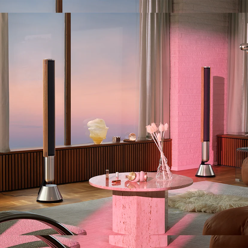 Der Beolab 28 ist die Quintessenz einer vielseitigen Eleganz. Egal ob an der Wand oder auf dem Boden, die elegante Silhouette bietet skulpturale Schönheit und mitreißenden Kinoklang – überall im Raum.