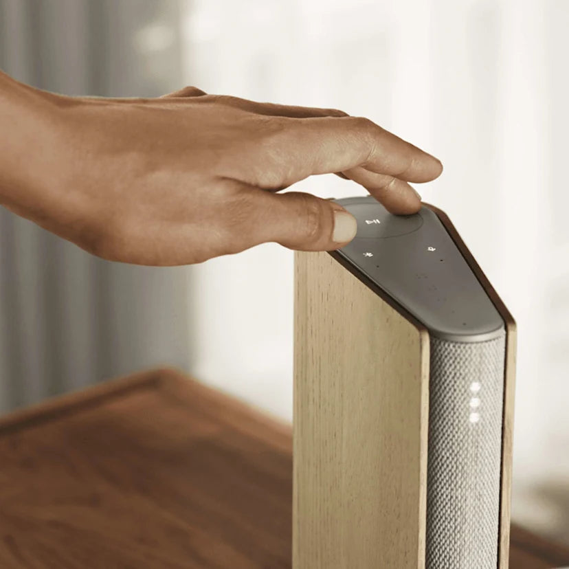 Intuitiv in die Oberseite des Lautsprechers integriert, ist die Schnittstelle so konzipiert, dass sie in einer Vielzahl von Räumen leicht zugänglich ist. Mit den Soft-Touch-Tasten können Sie nahtlos auf Ihre bevorzugten Bang & Olufsen Radioprogramme zugreifen, eine Google-Suche durchführen oder über Spotify streamen und die Lautstärke mit einer einzigartigen kreisenden Bewegung einstellen – bereits für sich genommen eine angenehme Erfahrung.
