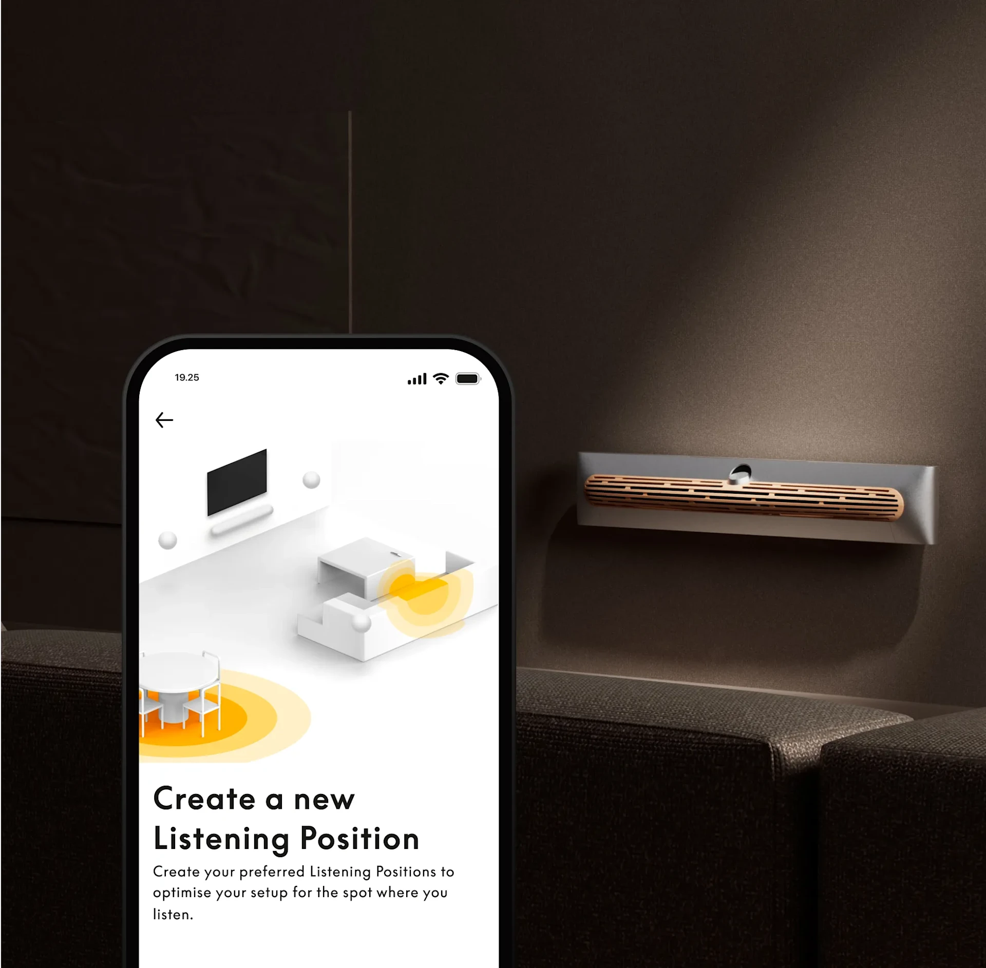 Die Beosound Premiere liefert vom allerersten Moment an ein hochwertiges Audioerlebnis. Falls du zusätzliche Lautsprecher mit ihr verwenden möchtest, empfehlen wir, für das bestmögliche Hörerlebnis eine Hörposition einzurichten.